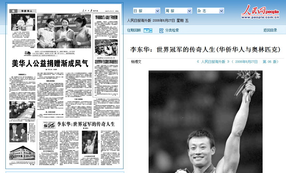 27.06.2008人民日报海外版:华侨华人与奥林匹克之李东华:世界冠军的传奇人生